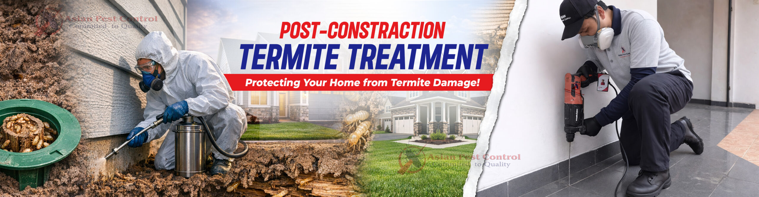 Our post-construction termite treatment is done on existing buildings to proactively and intensively protect the property against termite infestation. The treatment involves detection of termites using Termatrac, drilling holes at skirting level on the walls and injecting liquid termiticide in them by trained technicians. The liquid barrier termiticide treatment carried out by Asian Pest Control is one of the safest and most effective solutions for post-construction termite control.